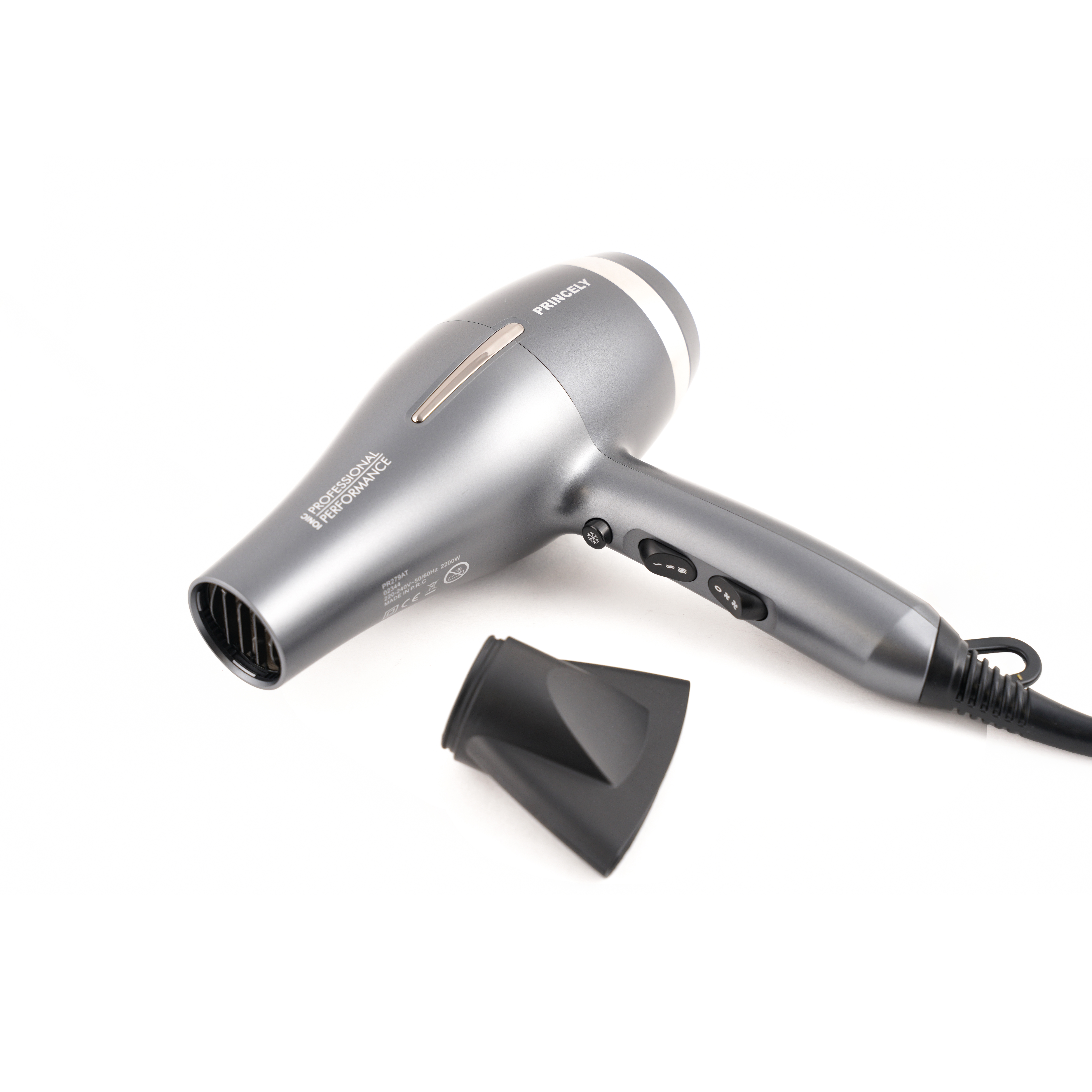 مشخصات سشوار 2200وات پرنسلی PR 279 AT:معمولا در فصل های سرد سال از سشوار برای خشک کردن مو استفاده می کنیم. هم چنین برای حالت دهی و براشینگ نیاز به یک سشوار قوی و پر قدرت است. اگر شما هم به دنبال یک سشوار حرفه ای و قوی هستید. پیشنهاد ما سشوار پرنسلی مدل PR279AT می باشد.سشوار پرنسلی مدل PR279AT دارای یک موتور پروفشنال از مدل AC است. هم چنین این قابلیت را به مصرف کننده می دهد. که دمای خروجی آن را از طریق دکمه در بین 3 حالت سرد، ملایم و گرم تنظیم کند. برای تنظیم قدرت پرتاب باد آن نیز می توان از 2 حالت متوسط و قوی متناسب با نوع مصرف انتخاب نمود.سشوار پرنسلی مدل PR279AT دارای خاصیت آیونیک نیز می باشد.به این صورت که با انتقال یون منفی به مو ها بعد از سشوار کشی مجدد مو های شما وز و بد حالت نخواهد شد